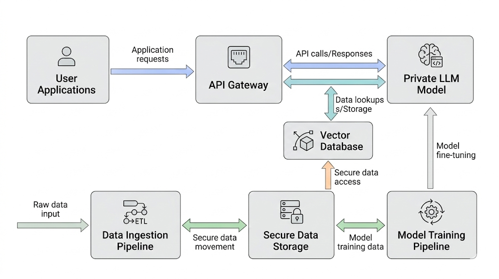 A Private LLM, or Private Large Language Model, refers to a machine learning model that is trained on proprietary data and hosted on secure infrastructure, ensuring that sensitive information remains confidential and under the control of the organization. Unlike public LLMs, which are accessible to anyone and trained on publicly available datasets, private LLMs are tailored to meet specific business needs and can be customized for various applications.